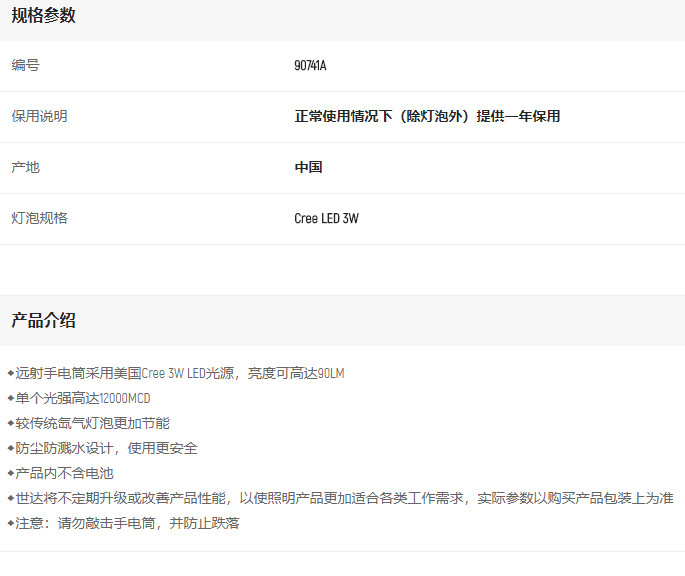 產(chǎn)品名字:世達(dá)鋁合金手電筒3節(jié)7號(hào)電池