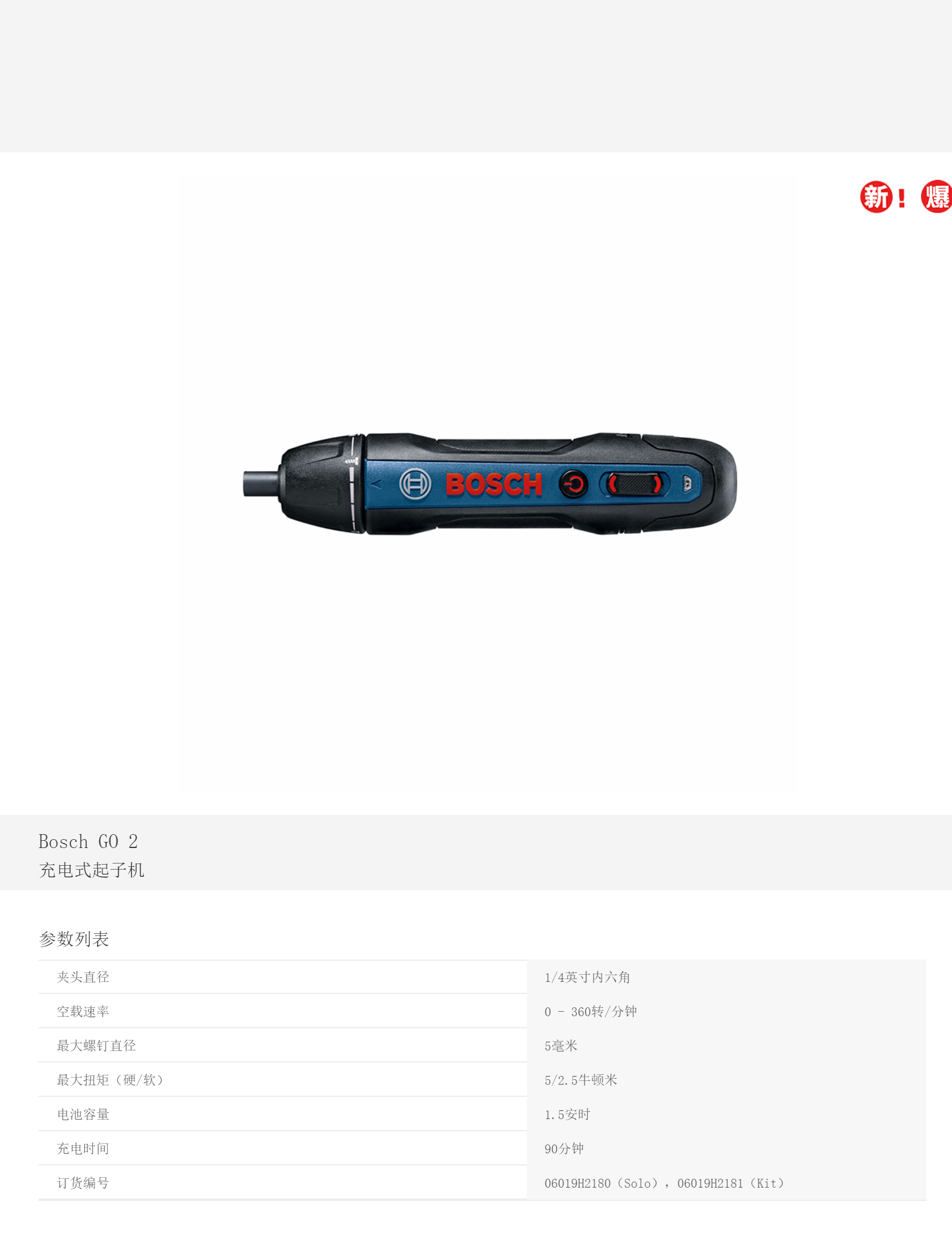 產(chǎn)品名字:博世充電起子機(jī)BOSCHGO2.0裸機(jī)