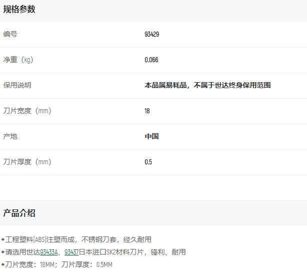 產(chǎn)品名字:世達(dá)塑柄旋鈕美工刀8節(jié)18*100mm