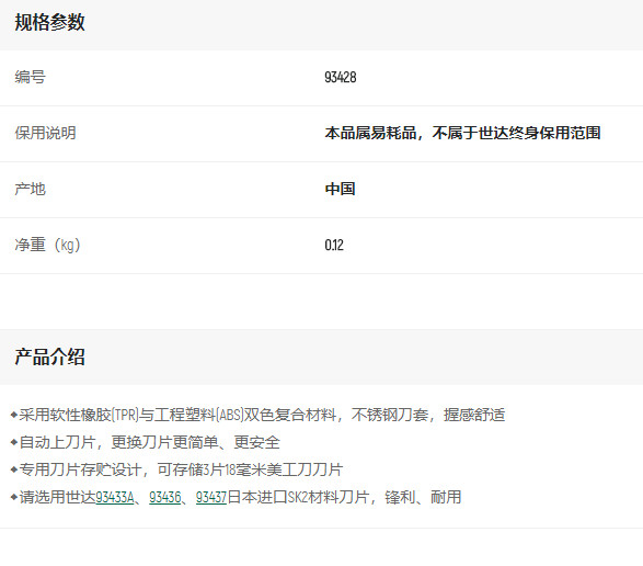 產(chǎn)品名字:世達(dá)橡塑柄推鈕美工刀8節(jié)18*100mm