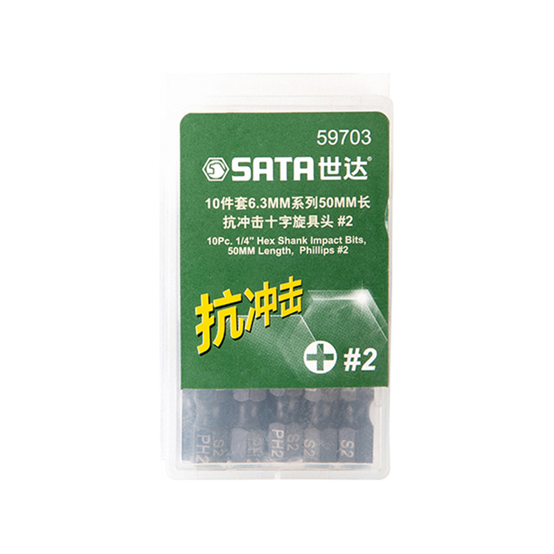 世達10件套6.3MM系列50MM長抗沖擊十字旋具頭#2 |