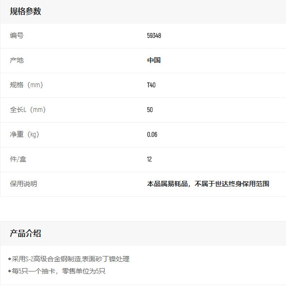 產品名字:世達5件套6.3mm系列50mm長中孔花型旋具頭