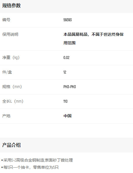 產(chǎn)品名字:世達(dá)6.3mm系列65mm長雙頭旋具頭PH3-PH3