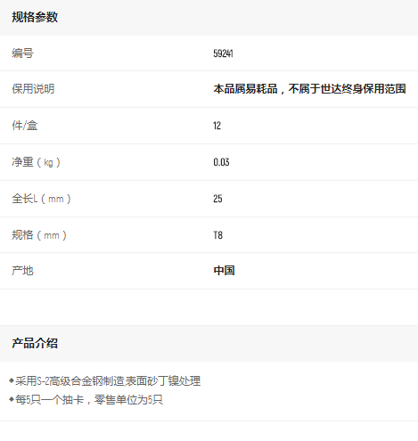 產(chǎn)品名字:世達5件套6.3mm系列25mm長中孔花型旋具頭TT8