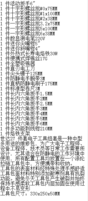 產(chǎn)品名字:世達(dá)27件電子工具組套