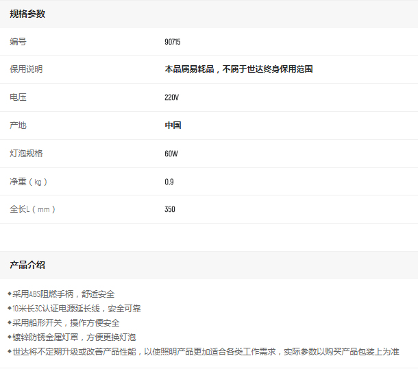 首頁>產(chǎn)品中心>照明>其他便攜式燈>世達(dá)手持式工作燈