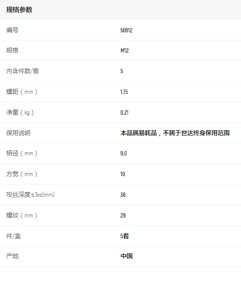 產(chǎn)品名字:世達5件套粗牙機用絲錐M12*1.75mm