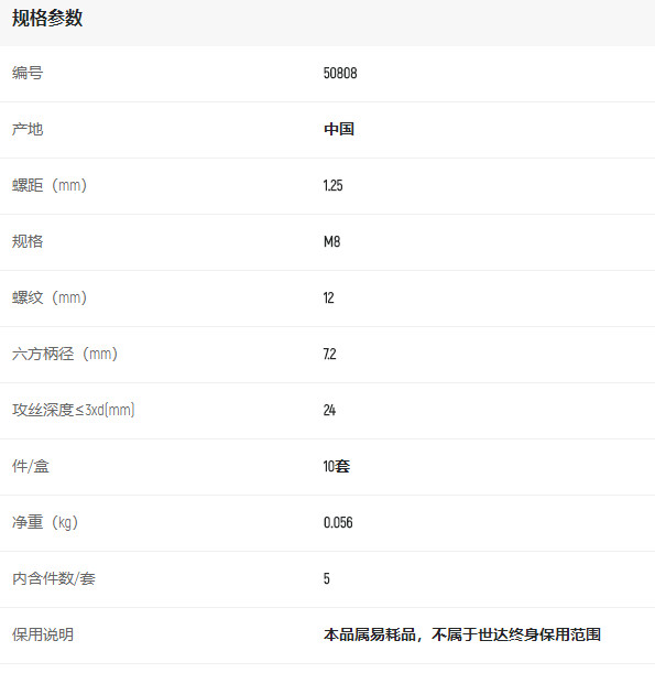 產(chǎn)品名字:世達5件套高速鋼復合絲錐M8*1.25mm