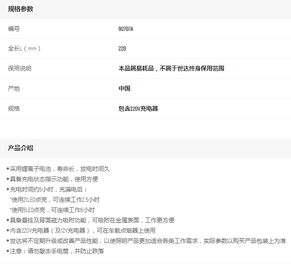 產(chǎn)品名字:世達(dá)26LED折疊鋰電充電式手電筒