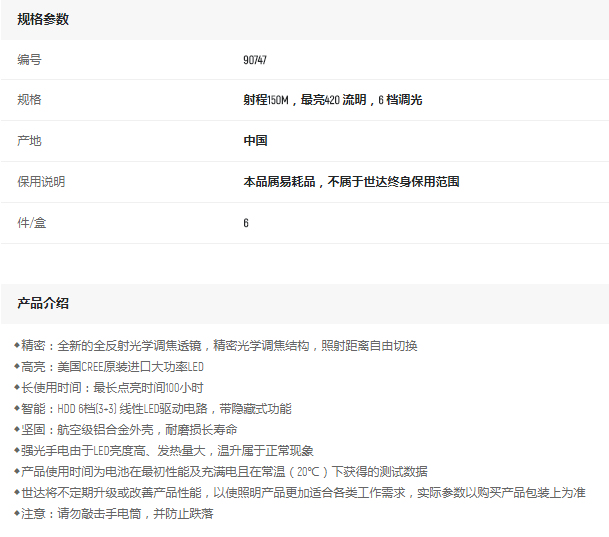 產(chǎn)品名字:世達(dá)高性能調(diào)焦強(qiáng)光充電式手電筒