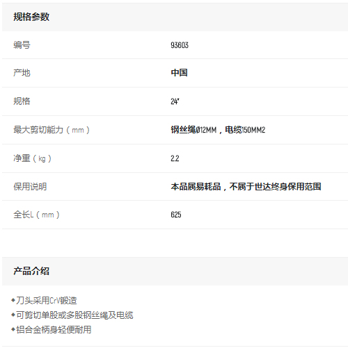 產(chǎn)品名字:世達(dá)鋼絲繩剪24寸