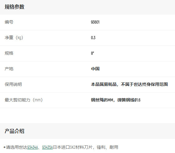 產(chǎn)品名字:世達鋼絲繩剪8寸