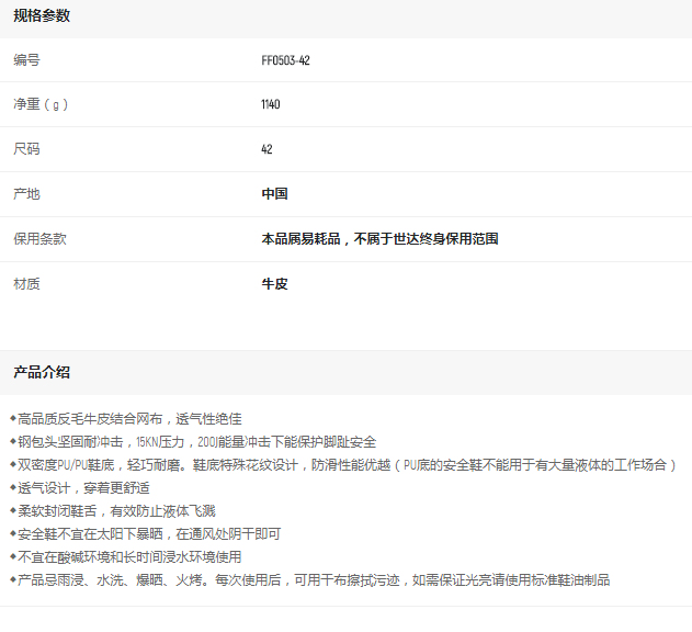 產(chǎn)品名字:世達(dá)休閑款保護(hù)足趾電絕緣安全鞋42碼