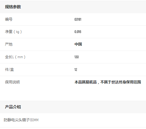 首頁(yè)>產(chǎn)品中心>電工電子工具>鑷子>世達(dá)防靜電尖頭鑷子