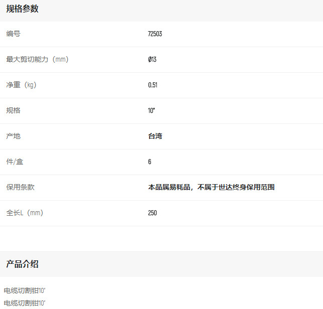 首頁(yè)>產(chǎn)品中心>電工電子工具>電子鉗>世達(dá)電纜切割鉗10寸
