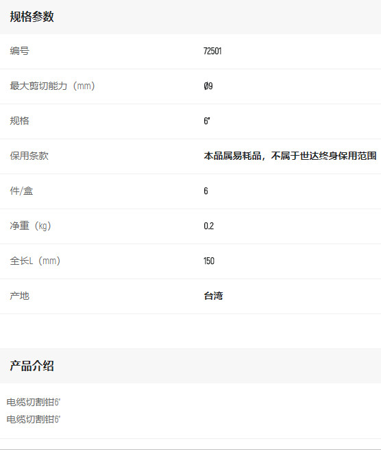 產(chǎn)品名字:世達電纜切割鉗6寸