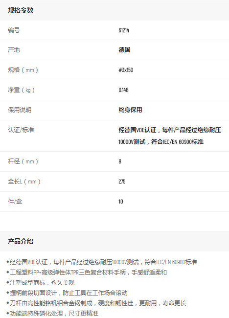 產(chǎn)品名字:世達G系列十字絕緣批#3*150mm