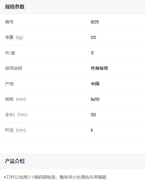 首頁>產(chǎn)品中心>螺絲批>一字螺絲批>世達A系列一字批6x250mm