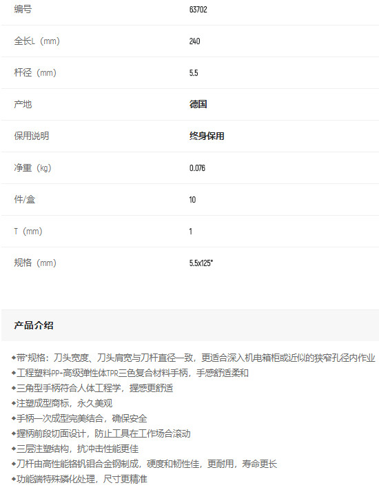 產(chǎn)品名字:世達(dá)G系列一字批5.5*125mm