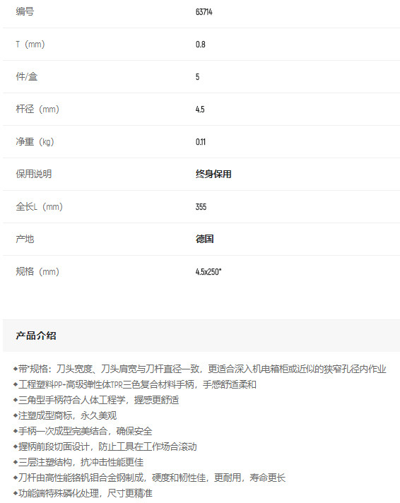 產(chǎn)品名字:世達(dá)G系列一字批4.5*250mm