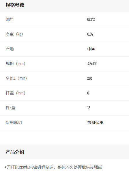 產(chǎn)品名字:世達(dá)A系列十字批#2*100mm