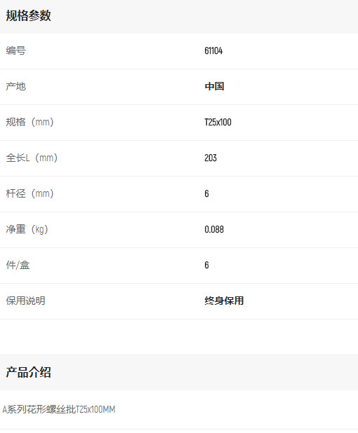 產(chǎn)品名字:世達(dá)花形螺絲批T25*100mm