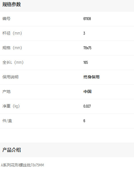 首頁>產(chǎn)品中心>螺絲批>其他螺絲批>世達花型螺絲批T8*75mm