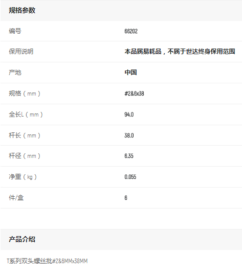 首頁>產(chǎn)品中心>螺絲批>其他螺絲批>世達雙頭螺絲批#2-6x38mm